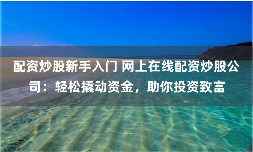 股票配资是一种利用杠杆原理放大资金的投资方式,它可以让投资者以小资金撬动大收益。配资公司会向投资者提供一定比例的资金永康